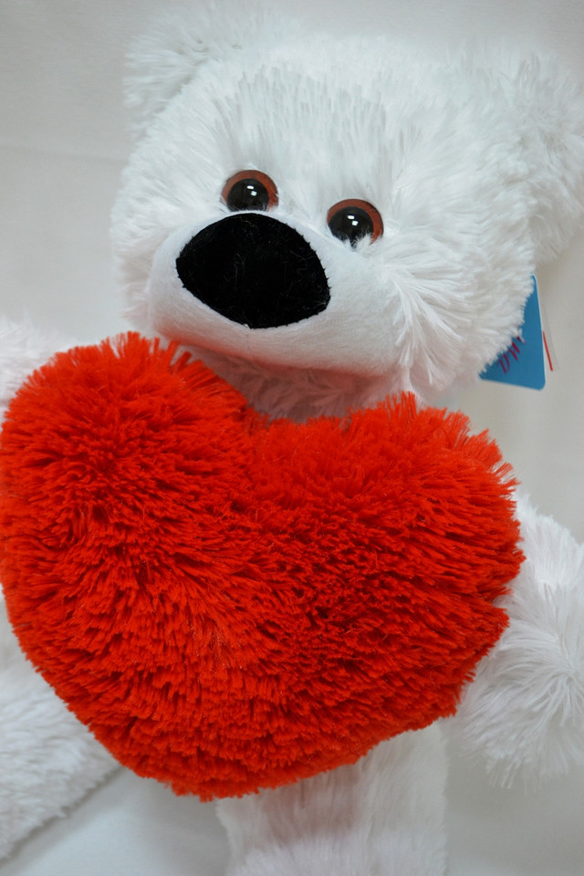 М'яка іграшка ведмедик 45 см білий з серцем 15 см